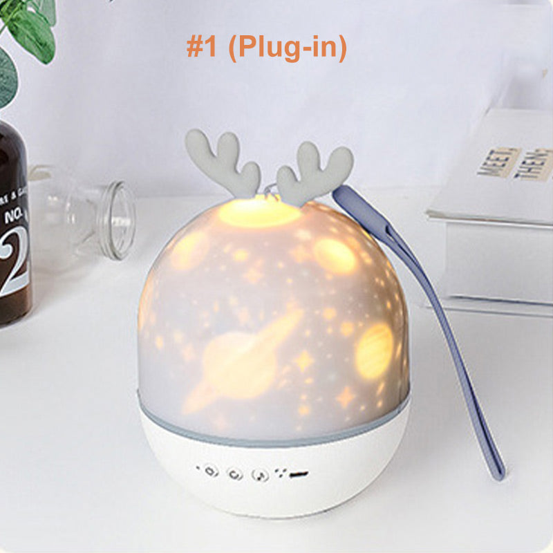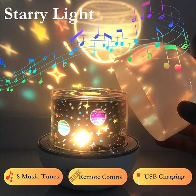 MULTIFUNKTIONSDESIGN: Nicht nur ein Nachttischlicht, sondern auch ein Nachtprojektor und eine Spieldose! Enthält 8 schöne Melodien, die jedem Raum eine traumhafte Atmosphäre verleihen. Erleben Sie, wie die Lichter und die Musik dynamisch synchron rotieren, um ein immersives Erlebnis zu schaffen.