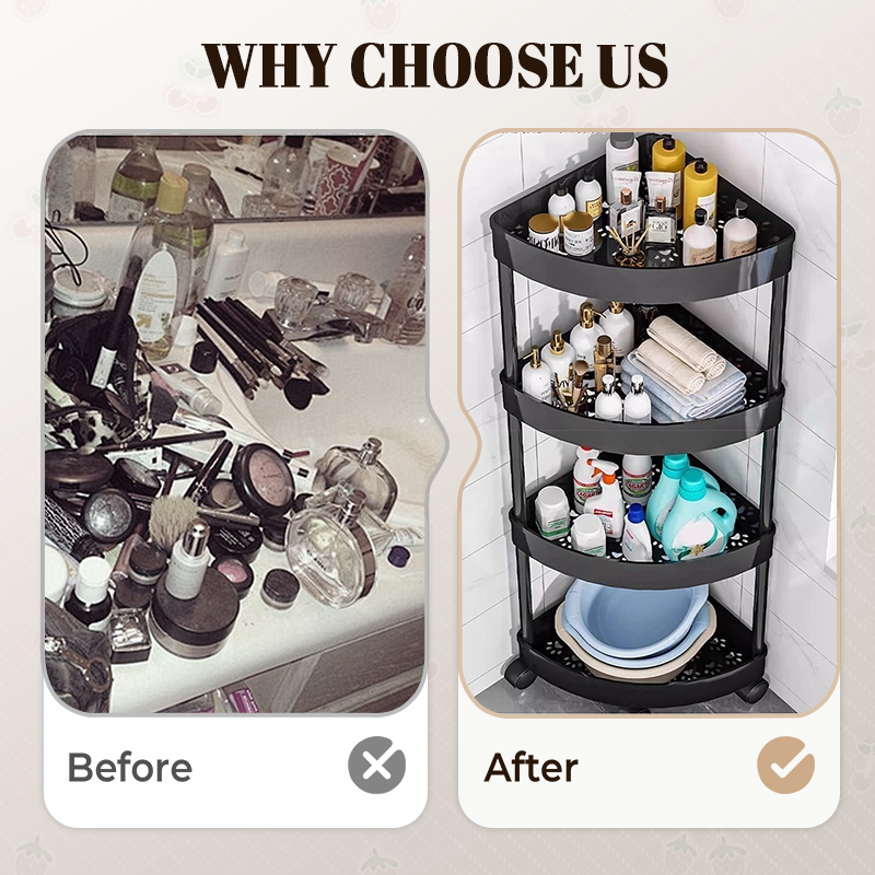 PLATZSPARENDE ECKDESIGN: Mit einem 90° gewinkelten Rahmen konstruiert, passt dieses Regal perfekt in ungenutzte Ecken und schmale Lücken – wie Badezimmernischen, Küchenkanten oder enge Eingangsbereiche. Es verwandelt toten Raum in funktionale Aufbewahrung, maximiert die Raumeffizienz, ohne dabei Zugänglichkeit oder Ästhetik zu beeinträchtigen.