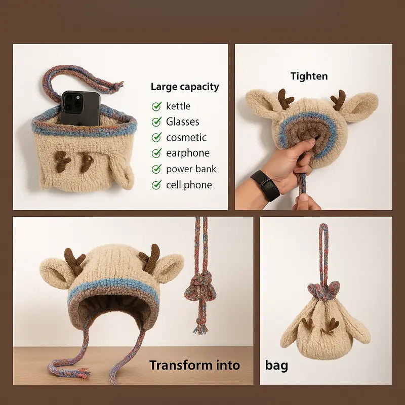 ✔ Sofortige Verwandlung – Einfach falten und ziehen, um in Sekunden von gemütlichem Hut zu bezaubernder Handtasche zu wechseln