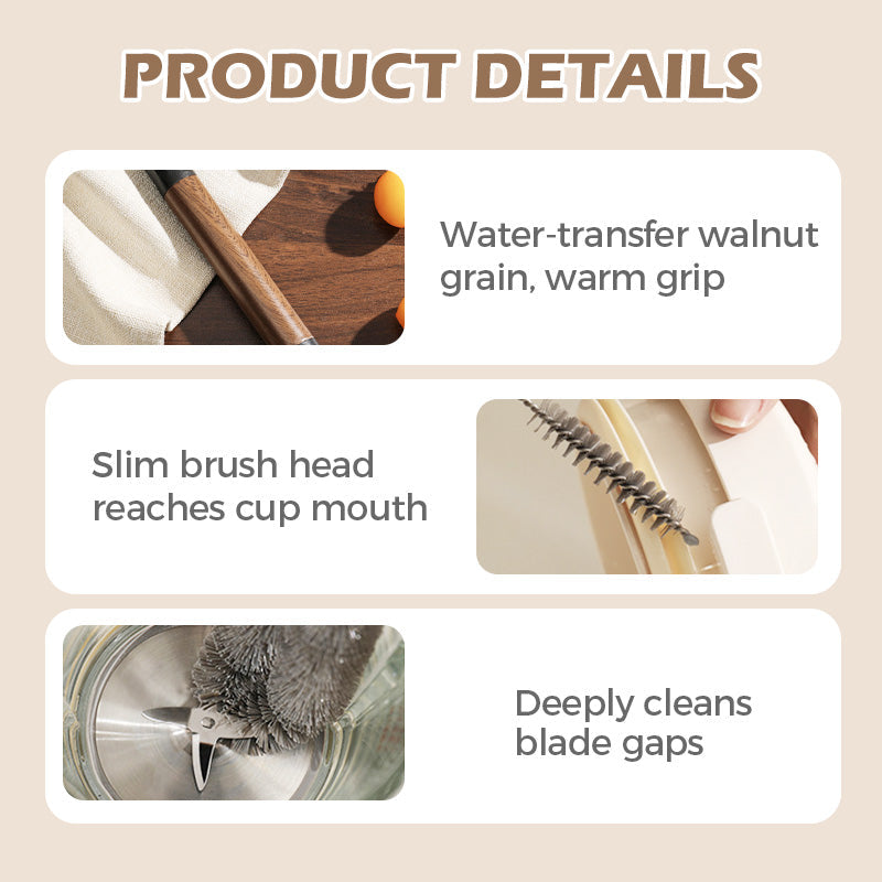 2-IN-1-MULTIFUNKTION: Diese Reinigungsbürste wurde sowohl für Mixer als auch für Tassenöffnungen entwickelt und ist ein All-in-One-Werkzeug zur Beseitigung hartnäckiger Flecken. Mit ihrem kompakten Design eignet sie sich perfekt für die Reinigung von Mixbehältern, Deckeln, Entsaftern, Teekannen und vielem mehr.