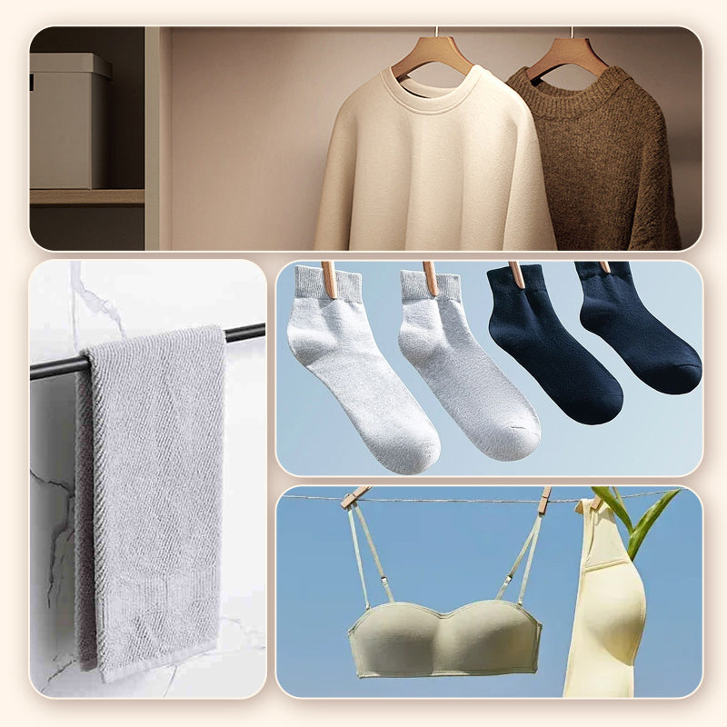 VIELSEITIGE VERWENDUNG FÜR KLEIDUNG UND MEHR: Perfekt zum Trocknen von Kleidung, Handtüchern, Wäsche und sogar kleinen Decken. Das vielseitige Design eignet sich auch zum Aufhängen von Taschen, Accessoires und mehr – eine unverzichtbare Ergänzung für jeden Haushalt.