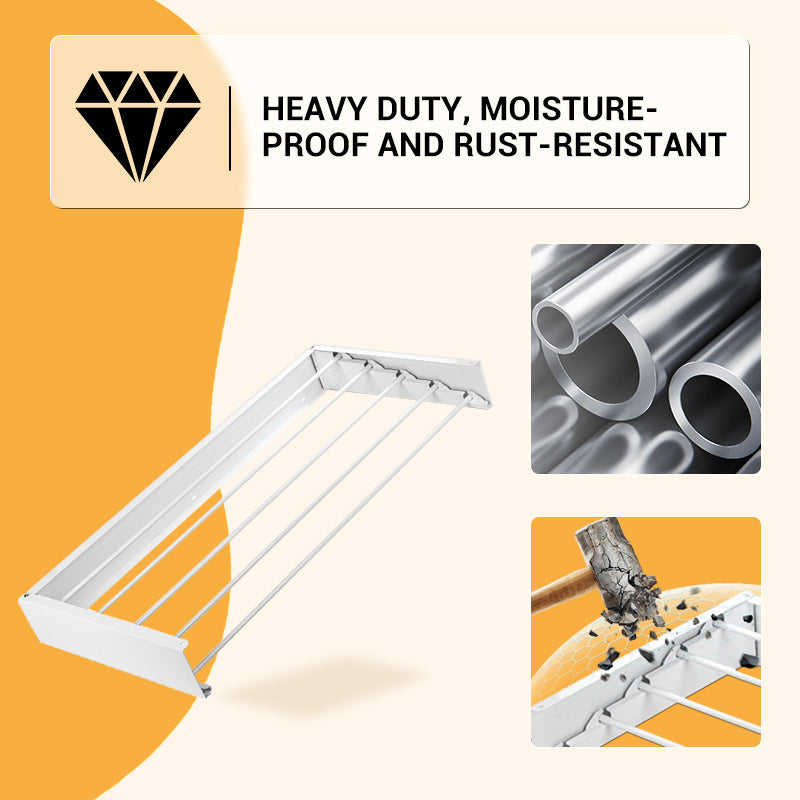 HOCHBELASTBAR, FEUCHTIGKEITSSCHUTZ UND ROSTBESTÄNDIG: Hergestellt aus robusten Materialien, hält dieser Wäschetrockner hohen Belastungen stand. Die feuchtigkeitsgeschützte und rostbeständige Beschichtung macht ihn ideal für feuchte Umgebungen wie Badezimmer und Waschküchen.