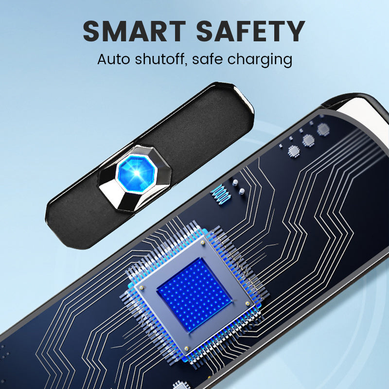 SNTELLIGENTER CHIP – Der integrierte intelligente Chip bietet automatische Abschaltung, Überhitzungsschutz und Stromregulierung, um das Feuerzeug beim Laden sicher zu halten.