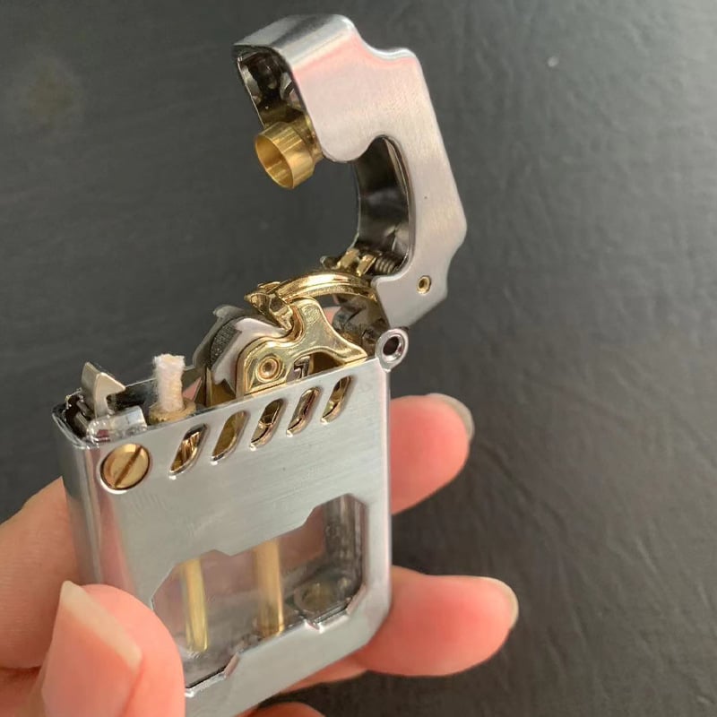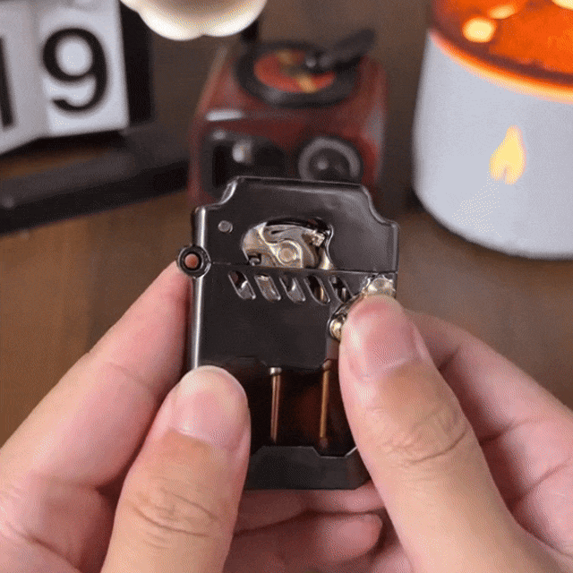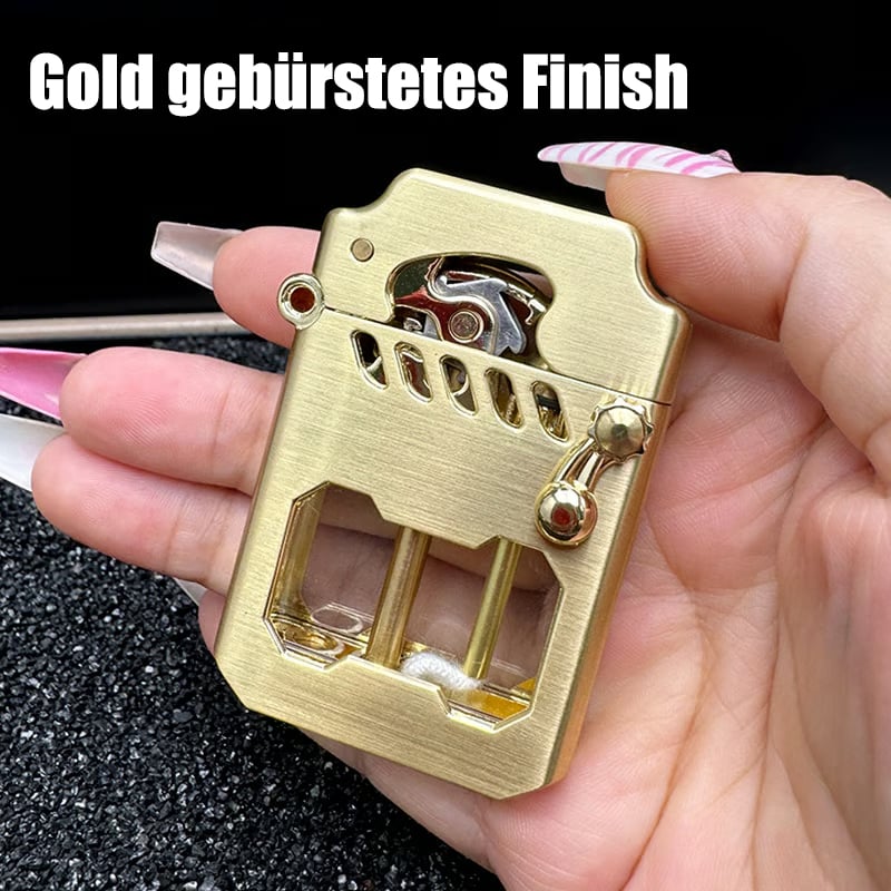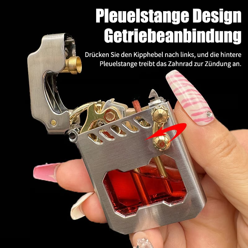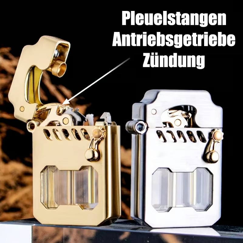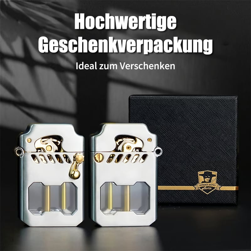 Diese innovative Funktion bietet ein haptisches Erlebnis, das sowohl Spaß macht als auch funktional ist. Wenn Sie das Feuerzeug anzünden, bewegen sich die synchronisierten Zahnräder harmonisch und erzeugen einen auffälligen visuellen Effekt, der mit Sicherheit die Aufmerksamkeit auf sich zieht.