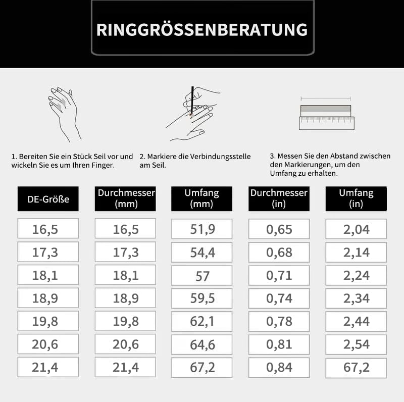 Größen: Erhältlich in mehreren US-Standard-Ringgrößen für eine passgenaue Sitzung.